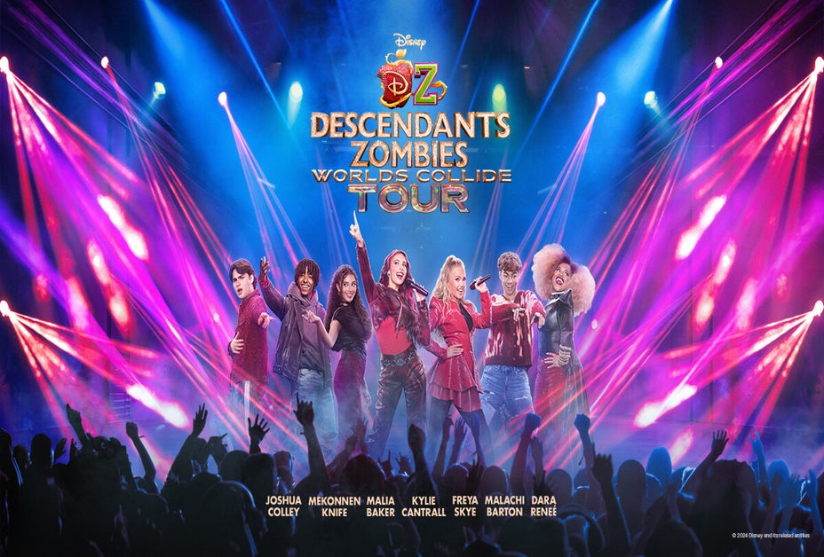 “Descendants/Zombies: Worlds Collide Tour” is a one-of-a-kind interactive live concert experience coming to Orlando. The tour features Kylie Cantrall, Freya Skye, Malia Baker, Malachi Barton, Dara Reneé, Joshua Colley and Mekonnen Knife. The arena tour will celebrate the chart-topping music from Disney’s “Descendants” and “Zombies” movie franchises, inspiring families and fans of all ages to dance, sing, and engage with their favorite stars.