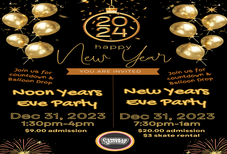 Ring in the New Year early at Semoran Skateway, featuring a countdown and balloon drop.
