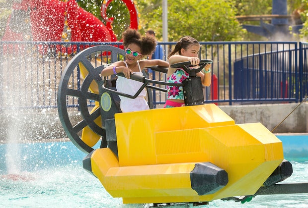 Dodge water cannons and splash your friends in the Aquazone Wave Racers.