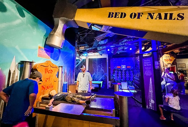 Feel the burn at the bed of nails inside the Physical Challenge zone.
