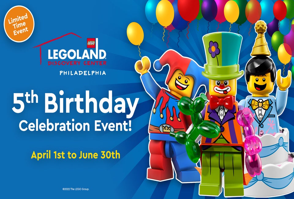 LEGOLAND® Discovery Center Philadelphia is turning five! Enoy a birthday-themed takeover with special activities including decorating a giant LEGO® birthday cake, a brand new LEGO® Petting Zoo, special birthday-themed builds, meet and greeta with characters on the weekends, and more.
