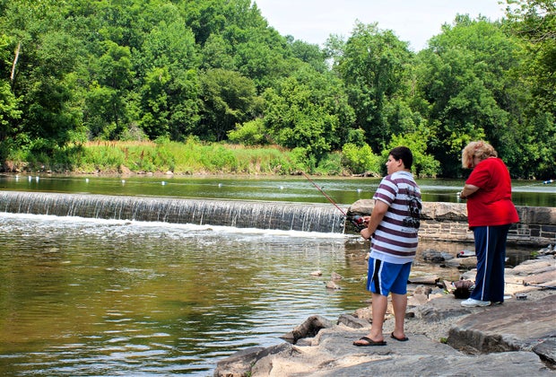 You can stop to drop a line while hiking through Tyler State Park. Photo courtesy of PA DCNR