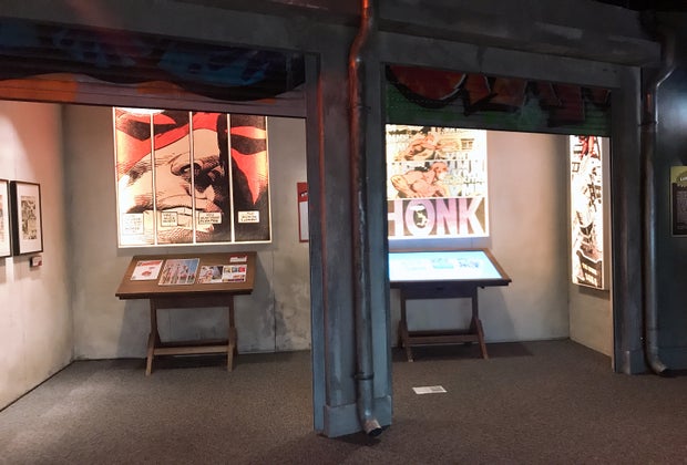 I loved the interactive touch screens that worked to provide you both with the basic information as well as the opportunity to really dig deep on a topic if it was a one that interested you. We learned about how comics are made, we talked about story and sequence. Doing so with a young reader was a really special part of the experience.
