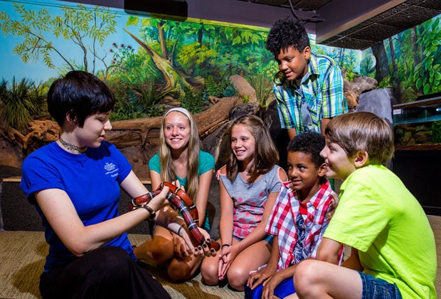 Up to 150 butterflies flourish in the tropical garden exhibit. With new butterflies arriving each week from around the world, what you’ll discover here will always be different. Make sure your kids know to look but not touch the butterflies, and also keep an eye on the floor as many of these insects like to rest there.