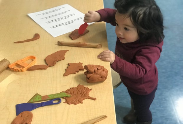 Brightly lit and incredibly mindful of their smaller visitors, the studio has a great selection of ways for your child to express themselves creatively. My one-year-old gravitated to the clay while my five-year-old had fun making leaf rubbings and trying out the fall-themed colors. One thing that really appealed to me was the enclosed space offered me an opportunity to relax while both children explored based on their age-appropriate interests.