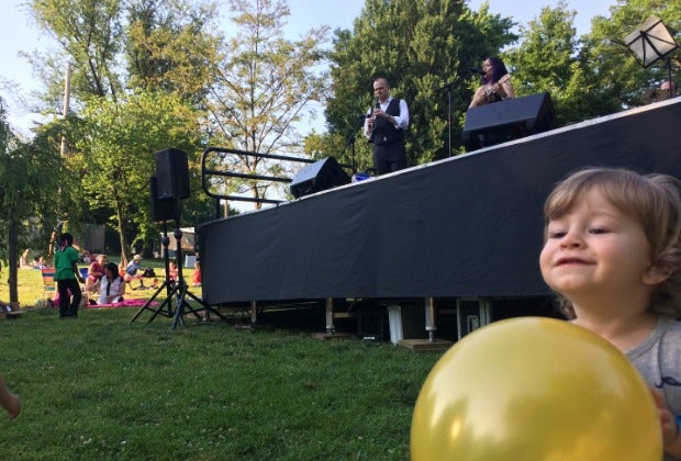 The music itself was great. It was interactive, and fun for kids, but not too cheesey for parents. The stage was set up in a great place where there wasn't really a bad spot in the playground. My kid was loving it; he danced up a storm! We were right in front of the stage and it wasn't deafeningly loud there, but if you've got sensitive kids, I'd recommend sitting a little further back or bringing ear plugs, just in case. The bands are different at every show, so I can't speak for them all, but the two we saw were lovely. One group even gave out balloons.