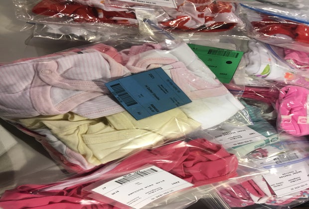 - Gather supplies. You will need safety pins, tagging tools, and zip lock bags in multiple sizes, as well as zip ties. Not to mention hangers. Bonus: if you have a free clothing rack you can hang clothes as they are ready.