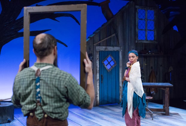 Walk into the Arden Theatre, and step right into a unique version of the Enchanted Forest. The stage is set simply: A house, trees, a table, a stool, and a trunk of clothes, but what unfolds over the course of an hour is a bit of interesting, although at times chaotic, magic as this entire adaptation of the classic tale of Snow White is brought to life by just two actors.