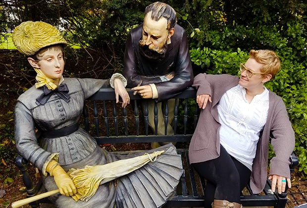 A photo-op with a sculpture that depicts the famous Édouard Manet 19th century painting, Dans la Serre.