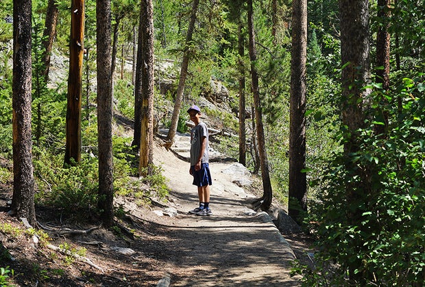 There are tons of great hiking trails throughout Rocky Mountain National Park, and the official Park website has a good outline of family-friendly hiking trails. Before staking out, keep in mind that at its lowest points, Rocky Mountain National Park is 7,500 feet above sea level, with hiking paths rising to greater than 12,000 feet. If you're not familiar with high-altitude recreation, it may surprise you how quickly you find yourself breathless. Take it slow and drink plenty of fluids. We love the hike to Adams Falls, which is just over 1/2 a mile. While there are rocky spots on the trail that make bringing a stroller along difficult, there's minimal elevation gain, and spectacular views of the waterfall, plus Mount Baldy in the distance. The Moraine Park Discovery Center, on the east side, offers a family-friendly nature trail. Coyote Valley is another great trail for little legs, with a wide dirt path that easily accommodates a stroller. It runs along the river bottom, offers beautiful views of the Kawuneeche Valley and Never Summer range, and if you're lucky, you might spot a moose in the willows. Like all wildlife encounters, keep your distance if you do! Older kids may get a kick out of the moderate Lulu City hike, which is lengthy at 6.2 miles and takes visitors to a 19th-century mining village, which was short on treasure but rich in views.