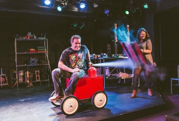 Admittedly, That Physics Show is mounted on a shoestring budget in a small black-box theater with prerecorded music and no set or costumes for Maiullo or his hardworking assistant, Kelsey Lane Dies. But Maiullo's infectious enthusiasm (this guy lives for science) and cool demos make up for the low production values. Sure, you could probably see many of these experiments on YouTube, but they are much more impressive live, especially because no seat is more than 10 or so feet from the stage.
