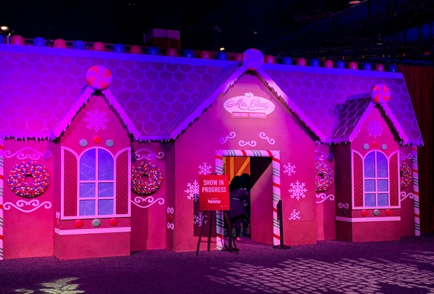 Next up was The Year Without A Santa Claus, where we got to experience a pretend snowfall, followed by A Christmas Story. We got a kick out of posing with the iconic leg lamp, and my kids enjoyed crawling through the kitchen cabinet. Then we boarded the Polar Express, where we saw scenes from the North Pole through the windows.