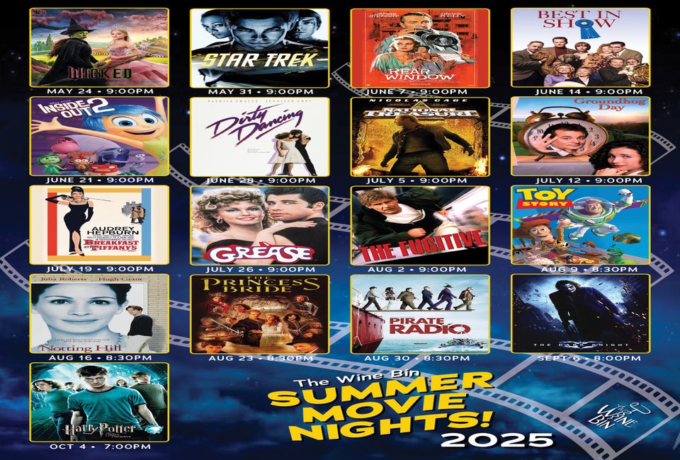 Every Saturday night from Memorial Day weekend through the end of September, come to the Wine Bin for the live music and stay for the free movie!