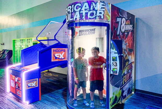 My kids did convince me to give them a few dollars so they could play an arcade-style basketball game and step inside a hurricane simulator, complete with strong winds. They got a huge kick out of it!