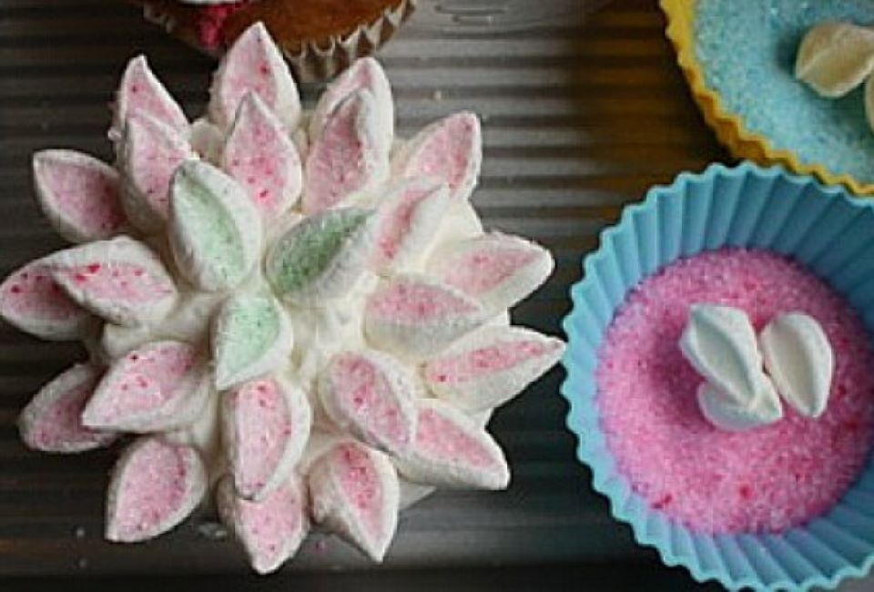 3. Place marshmallow "petals" onto frosted cupcake, start on the outside and work your way in.