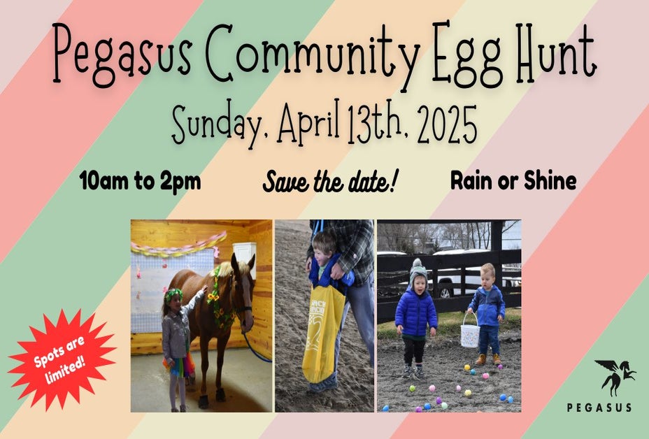 Join the festivities at Pegasus Therapeutic Riding to celebrate spring. An Easter egg hunt is included, plus a bake sale, crafts, games, prizes, photo-ops, and barn tours. Don't forget to bring an Easter basket!