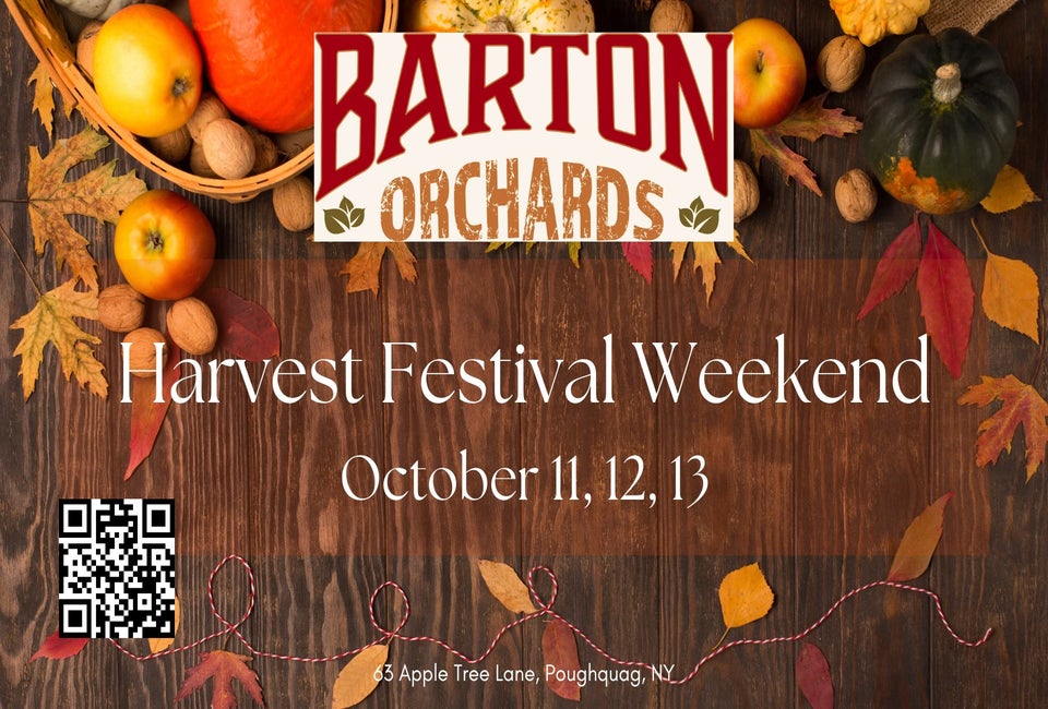 Celebrate the best of fall at Harvest Festival Weekend at Barton Orchards. Enjoy apple picking, pumpkin patch fun, and seasonal treats like cider donuts, fresh apple cider, and more. Explore the Fun Park featuring the Mega Slide, pedal go-karts, mini golf, apple cannons, cow train, and the Knights & Dragons Corn Maze.