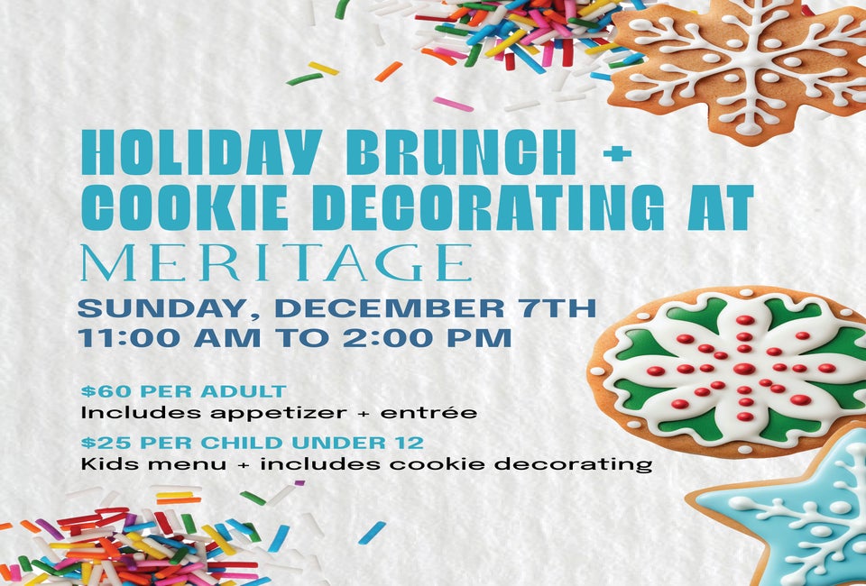 Gather the whole family for a delicious, stress-free weekend tradition at the Meritage! Enjoy a special brunch designed for both food lovers and little ones. While you wait for your meal, children are invited to the private event room to decorate a festive cookie!