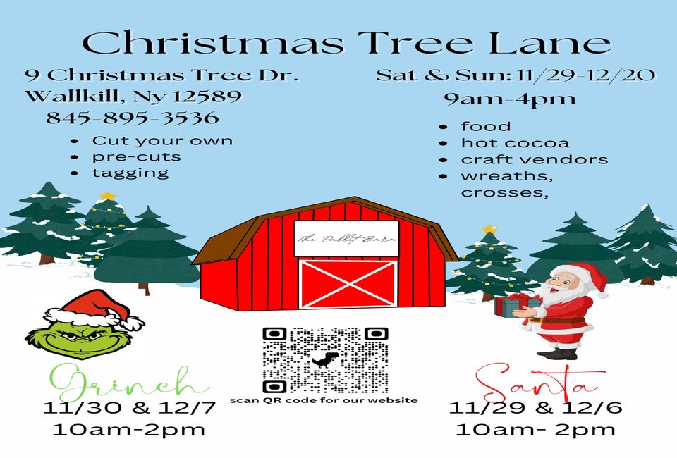 Santa and the Grinch are visiting Christmas Tree Lane on select days this season. Come grab some lunch, look for your tree, relax with some hot cocoa, and say "hi." Don't forget your camera.