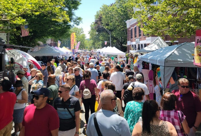 More than 275 exhibitors showcase a selection of arts, crafts, and goods. Local vendors also offer delicious food, and live music streams from the gazebo.