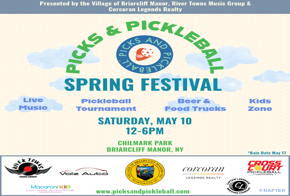 Enjoy a FREE, family-friendly celebration of springtime in Briarcliff Manor’s beautiful Chilmark Park. Picks & Pickleball features live music all day, cold beer by Captain Lawrence, a selection of food trucks, and tons of kids’ activities and entertainment. New for this year — goats in costumes and lawn games for grownups!