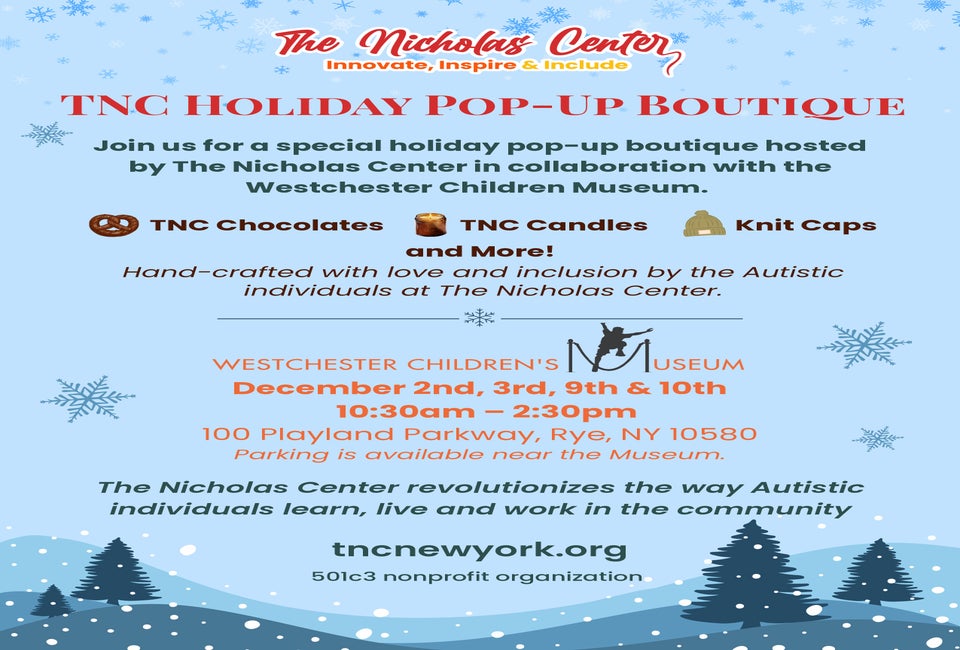 The Nicholas Center (TNC), a human service agency committed to revolutionizing the way Autistic individuals learn, live, and work in the community, is excited to announce a special holiday shopping event at the Westchester Children's Museum.