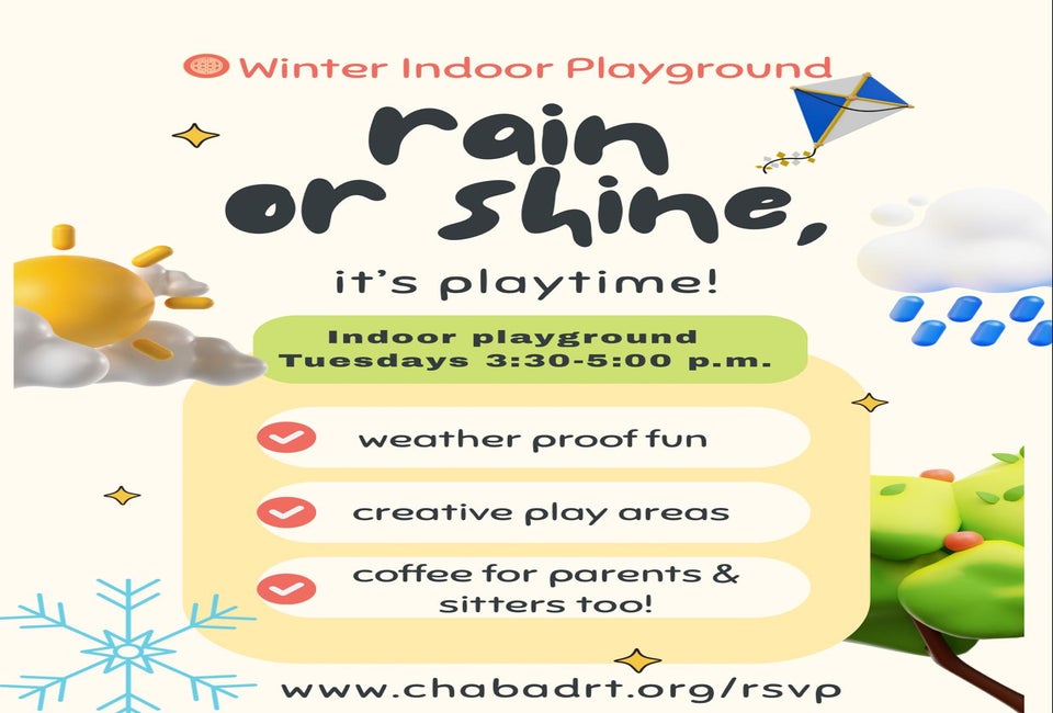 Looking for a warm place to play this winter? Check out Chabad of the Rivertowns for a Winter Indoor Playground! Kids ages 0-5 can enjoy open play in a safe, spacious environment with sensory activities, crafts, and healthy snacks. Parents and sitters can relax with coffee while children burn off energy and make new friends. No mess to clean up at home!