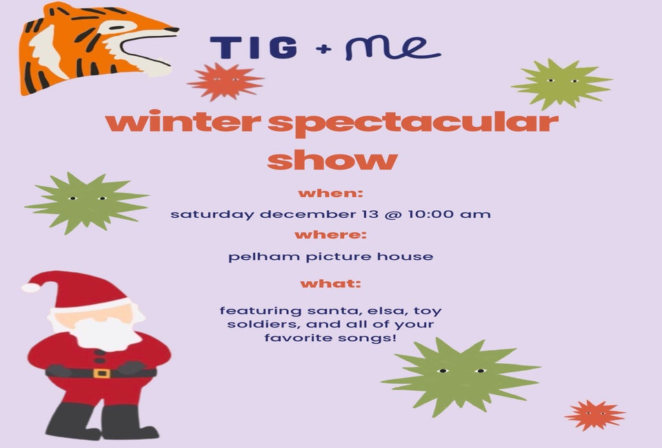 Join Tig & Peach at the Pelham Picture house for a magical holiday show featuring Elsa, Toy Soldiers, and Santa Claus! Enjoy 45 minutes of festive fun, followed by time to snap photos with the stars.