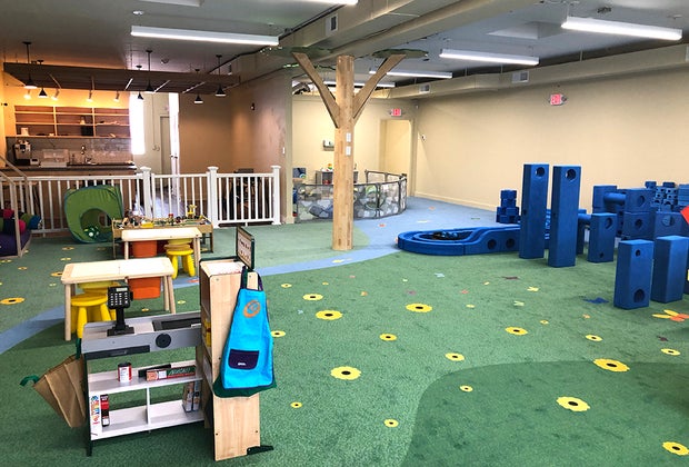 For those who need a breather, a canopied couch might do the trick, and the cafe serves up drinks and snacks for both adults and kids. For those under 18 months, a fenced-off area is just the right size.